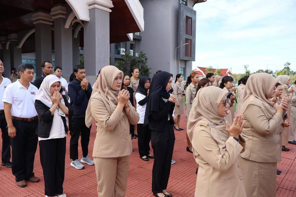 วันนี้ (27 ตุลาคม 2568 ) เวลา 08.00 น. นายไชยา สิยาชีพ พลังงานจังหวัดนราธิวาส พร้อมด้วยข้าราชการ และเจ้าหน้าที่สำนักงานพลังงานจังหวัดนราธิวาส ร่วมกิจกรรมเคารพธงชาติและร้องเพลงชาติไทย ณ บริเวณหน้าเสาธง ศาลากลางจังหวัดนราธิวาส แห่งที่ 2 ตำบลลำภู อ.เมืองนราธิวาส จ.นราธิวาส โดยมีหัวหน้าส่วนราชการ ข้าราชการ และเจ้าหน้าที่ที่ปฏิบัติราชการประจำศาลากลางจังหวัดนราธิวาส เข้าร่วมกิจกรรมอย่างพร้อมเพียงกัน เพื่อแสดงออกถึงความจงรักภักดี ต่อสถาบันชาติ ศาสนา และพระมหากษัตริย์ และเป็นการเตรียมความพร้อมในการปฏิบัติราชการ ซึ่งวันนี้ สำนักงานพลังงานจังหวัดนราธิวาส เป็นหน่วยงานผู้รับผิดชอบในการเชิญธงชาติ กล่าวนำสวดมนต์ และกล่าวนำสวดดุอาร์